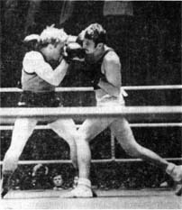 Сначала изучаются и совершенствуются атаки одним, далее двумя ударами в голову и туловище левой и правой или правой и левой, начиная с самых простых (прямых) ударов, потом прямых в сочетании с боковыми и ударами снизу. Одновременно совершенствуются защитные действия. Изучать защитные действия рекомендуется в такой последовательности: сначала защиты передвижением (уходами), потом подставками рук, затем сочетание подставок и отбивов с шагами назад и в стороны, с уклонами назад (способствует развитию чувства дистанции). Эти формы защит характерны для ведения боя на дальней дистанции. Далее следует переходить к изучению и совершенствованию более сложных форм, создающих наиболее выгодные условия для решительных действий, уклонов в стороны и назад от прямых ударов и нырков от боковых. В последующих тренировках целесообразно применять комбинированные защиты: подставки с уклонами и нырками или шаги назад и в стороны с отбивами и подставками и т. д. При проведении тренировок с партнером можно изучить два варианта комбинаций: условный, когда одному боксеру дано определенное задание и он знает, что будет делать его партнер, и произвольный, когда каждый из боксеров проводит технические приемы и выбирает тактические формы самостоятельно. В этом случае от боксеров требуется творческий подход, умение рационально использовать свои силы и возможности. Совершенствование защитных действий требует особенного внимания со стороны тренера (преподавателя) и боксера. На каждом занятии на протяжении всей спортивной деятельности надо регулярно повторять защиты, совершенствовать технику их выполнения, доводить до автоматизма. Боксеры, слабо овладевшие техникой защитных действий, пропускают немало ударов — и слабых и сильных. Даже победы у них с «большими потерями». Спортивная деятельность таких боксеров недолговечна, они не достигают высокого спортивного мастерства и часто в расцвете своих спортивных возможностей бросают бокс. Для более успешного совершенствования техники ударов и защитных действий боксеры сначала изучают атаки и защиты от них без ответных и встречных контрударов. Один боксер атакует определенными ударами, а другой применяет защиты, и так до тех пор, пока первый научится правильно наносить удары, а второй — точно и надежно защищаться. Комбинации изучаются по определенному тесту, затем произвольно. Время от времени для контроля надо возвращаться к выполнению движений в медленном темпе. Против одного и того же атакующего удара желательно применять различные защиты. Приемы н до выполнять свободно, без напряжения, следя за правильностью движений, но по мере овладения техникой быстроту действий следует увеличивать. Предлагаемая последовательность в обучении и тренировке дает возможность занимающемуся быстрее найти свою манеру ведения боя на основе овладения разнообразными техническими средствами, улучшать ориентировку, совершенствовать точность нанесения ударов, правильность выполнения защит, выбор удобных исходных положений для активных контрдействий. При изучении и совершенствовании техники преподаватель всей группе дает задание овладеть определенным приемом.' На первых этапах обучения упражнение выполняет одновременно вся группа. По мере спортивного роста боксеров (а это происходит не у всех одновреме