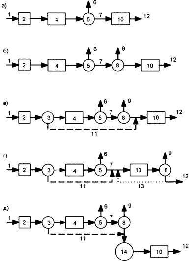 С5H7NO2+5O2 -> 5С02+2H20 + NH3 c последующим окислением NH3 до N02. Аэробной стабилизации может подвергаться неуплотненный и уплотненный избыточный активный ил и его смесь с осадком первичных отстойников. Процесс аэробной стабилизации может осуществляться по нескольким схемам: Рис. 15.19. Схемы аэробной стабилизации осадка: 1 - подача сточной воды; 2 - решетка и песколовка; 3 - первичный отстойник; 4 - аэротенк; 5 - вторичный отстойник; 6 - очищенные сточные воды; 7 - избыточный активный ил; 8 - уплотнитель; 9 - иловая вода; 10 - стабилизатор; 11 - осадок из первичного отстойника; 12 - стабилизированный осадок; 13 - циркуляция уплотненного осадка; 14 – метантенк. Аэробная стабилизация осадков обеспечивает получение биологически стабильных продуктов, хорошие показатели влагоотдачи, простоту эксплуатации и низкие строительные стоимости сооружений. Однако значительные энергетические затраты на аэрацию ограничивают целесообразность использования этого процесса на очистных сооружениях производительностью более 50-100 тыс. м3/сут.