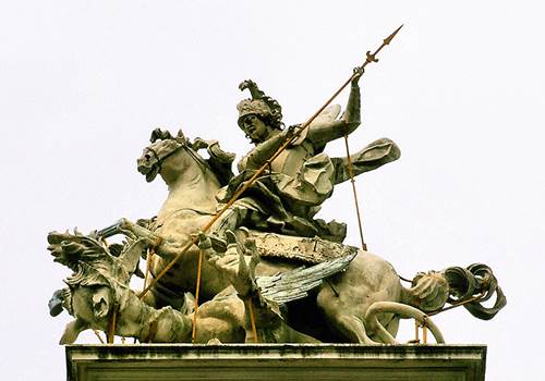 Скульптурна група святого Юрія змієборця на фасаді собору святого Юра у Львові. Скульптор Й. Пінзель.