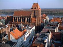Opowiedz mi o Średniowieczny zespół miejski Torunia (Расскажите мне о Средневековый город Торунь) Toruń przeszedł do historii architektury dzięki usytuowanemu na prawym brzegu Wisły Staremu Miastu, którego układ od ponad 700 lat pozostaje niezmienny. Na średniowiecznym rynku i otaczających go ulicach znajduje się kilkaset gotyckich zabytków, wśród których największą osobliwością jest Krzywa Wieża. To największa, po Krakowie, liczba autentycznych zabytków sztuki i architektury gotyckiej w Polsce. Najwyższej klasy obiekty Toruń zawdzięcza Krzyżakom, którzy sprawowali władzę w mieście ponad 200 lat, począwszy od 1230 roku. Ich siedzibą w Toruniu był zamek. Nietypowy – bo zbudowany nie jak większość krzyżackich zamków na planie prostokąta, tylko na planie podkowy. Budowla nie przetrwała do naszych czasów – zburzyli ją mieszczenie na początku wojny trzynastoletniej. Oprócz ruin zamku, w panoramę staromiejskiego Torunia wpisał się stojący na rynku Ratusz, uważany za jedno z najwybitniejszych osiągnięć gotyckiej architektury mieszczańskiej w Europie. Poza nim, wśród obiektów wybudowanych przez Zakonników należy wyróżnić zwłaszcza monumentalne, gotyckie kościoły, istniejące do dziś: św. Janów, św. Jakuba, Wniebowzięcia Najświętszej Marii Panny oraz nieistniejący: św. Mikołaja. Bardzo charakterystyczną cechą jest toruński budulec: kościoły, kamienice i mury - niemal wszystkie toruńskie zabytki zbudowano z cegły. Dzięki temu, że miasto pozostało nie zniszczone w czasie II wojny światowej, do dziś można podziwiać gotycki i średniowieczny Toruń, w takiej formie, jaką przed laty pozostawili po sobie ówcześni mieszkańcy. Dziś Toruń kojarzony jest przede wszystkim z wybitnym astronomem Mikołajem Kopernikiem, a najważniejszym dla dzieci toruńskim symbolem są przepyszne pierniki.