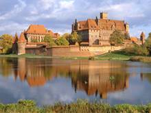 Opowiedz mi o Zamek Krzyżacki w Malborku (Расскажите мне о Замке Крыжаски в Мальборке) Ten największy ceglany zespół zamkowy na świecie co roku odwiedza około pół miliona turystów. Jest to najpotężniejsza warownia gotycka w Europie, prawdziwa perła architektury obronnej. Budowę zamku rozpoczęto w XIII wieku, a największe zmiany w kształcie budowli zaszły w następnym stuleciu, w związku z decyzją z roku 1309 dotyczącą przeniesienia z Wenecji do Malborka stolicy Państwa Krzyżackiego i siedziby Wielkiego Mistrza. Niewiele brakowało, by jeden z najcenniejszych pomorskich zabytków przestał istnieć. Zaniedbywany i dowolnie przebudowywany w XVIII wieku, miał być nawet przeznaczony do rozbiórki. W efekcie m.in. zniszczeń z czasów II wojny światowej, które pochłonęły 50% budowli, imponująca warownia jest w znacznej części rekonstrukcją dawnego, gotyckiego założenia, a prace nad jej odbudową wciąż trwają. Budowla składa się z trzech zasadniczych części: Zamku Wysokiego, Zamku Średniego i Przedzamcza. Każda z nich posiadała własny system obronny, a całość otaczały wspólne fortyfikacje. Do najpiękniejszych budowli należy pałac Wielkich Mistrzów – uważany za jedno ze szczytowych osiągnięć świeckiej architektury gotyckiej. Wielbiciele pięknej zamkowej panoramy, przechodząc drewnianą kładką na drugi brzeg Nogatu, mogą podziwiać najczęściej uwieczniany na zdjęciach widok Zamku od strony zachodniej. Malborską twierdzę szczególnie warto odwiedzić w trzeci weekend lipca, kiedy to odbywa się na zamkowych wałach spektakl „Oblężenie Malborka” – widowiskowa inscenizacja ataku wojsk Władysława Jagiełły na krzyżacką stolicę. Wydarzenia te rozegrały się w 1410 roku, niedługo po bitwie pod Grunwaldem. W czasie imprezy zamek tętni średniowiecznym gwarem – zjeżdża się tu kwiat rycerstwa europejskiego a współcześni turyści mogą odbyć podróż w czasie, przechadzając się między kramami jarmarku rzemiosł średniowiecznych.