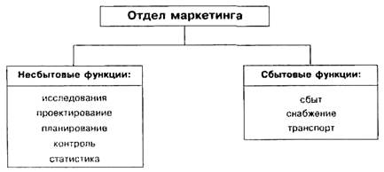 Функциональная структура отдела маркетинга приведена на рис. 2. Возможны также смешанные структуры управления и их разновидности. В настоящее время на отечественных предприятиях наиболее распространена линейно-функциональная структура управления организацией, построенная по принципу функциональной специализации служб или подсистем (рис. 3).
