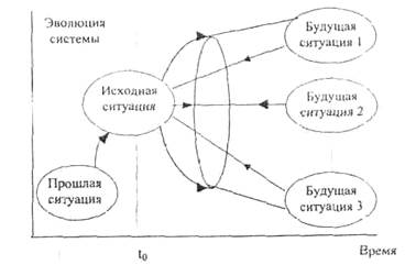 Результатом использования метода сценариев является получение документа, в котором дается последовательное детальное описание будущего состояния объекта, включающего в себя логику развития его во времени и при различных условиях функционирования. Например, можно разработать следующие сценарии социально-экономического развития фирмы: · оптимистический; · реалистический (средний); · пессимистический. Один из этих сценариев будет являться базовым, а два других - альтернативными (рис.3.3).