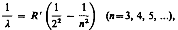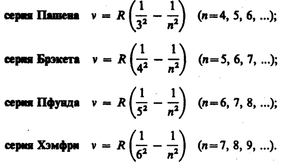 Швейцарский ученый И. Бальмер (1825—1898) подобрал эмпирическую формулу, описывающую все известные в то время спектральные линии атома водорода в видимой области спектра: