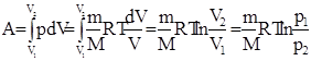 Тогда выражение для работы изобарного расширения примет вид A=m/MR(T2-T1). Из этого выражения вытекает физический смысл молярной газовой постоянной R: если Т2-T1 =1 К, то для 1 моля газа R=А, т.е. R численно равна работе изобарного расширения 1 моля идеального газа при нагревании его на 1 К. В изобарном процессе при сообщении газу массой m количества теплоты