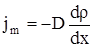 2. Диффузия. Явление диффузии заключается в том, что происходит самопроизвольное проникновение и перемешивание частиц двух соприкасающихся газов, жидкостей и даже твердых тел; диффузия сводится к обмену масс частиц этих тел, возникает и продолжается, пока существует градиент плотности. Во время становления молекулярно-кинетической теории по вопросу диффузии возникли противоречия. Так как молекулы движутся с огромными скоростями, диффузия должна происходить очень быстро. Если же открыть в комнате сосуд с пахучим веществом, то запах распространяется очень медленно. Однако противоречия здесь нет. Молекулы при атмосферном давлении обладают малой длиной свободного пробега и сталкиваясь с другими молекулами, в основном "стоят" на месте. Явление диффузии для химически однородного газа подчиняется закону Фика: