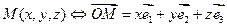 У п р а ж н е н и е. Построить точку по координатам в заданном аффинном репере в пространстве. Аналогично тому, как это делалось на плоскости, с помощью координат решаются простейшие задачи 1. Определение координат вектора по координатам начала и конца в аффинной системе координат. 2. Определение координат точки по заданному простому отношению трех точек прямой и координатам двух из них в аффинной системе координат. 3. Вычисление расстояния между точками по координатам относительно прямоугольной системы координат Задавая в пространстве аффинную систему координат, мы устанавливаем взаимно однозначное соответствие между точками и упорядоченными тройками действительных чисел. Это позволяет находить условие, определяющее геометрическую фигуру. Под условием, определяющим геометрическую фигуру, понимаем упорядоченные тройки действительных чисел, уравнения, неравенства или их системы, которым удовлетворяют координаты любой точки, принадлежащей фигуре, и не удовлетворяют координаты точек, не принадлежащих фигуре. Тогда геометрическую задачу можно перевести на язык алгебры, решить методами алгебры и полученный результат интерпретировать геометрически.