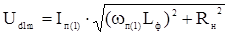 где Ud1m – амплитудное значение напряжения первой гармоники на входе фильтра; Udн1m- амплитудное значение напряжения первой гармоники на выходе фильтра т.е. на нагрузке. Напряжения Ud1m и Udн1m определяют как падения напряжения от протекания первой гармоники тока пульсации Iп(1) по формулам:
