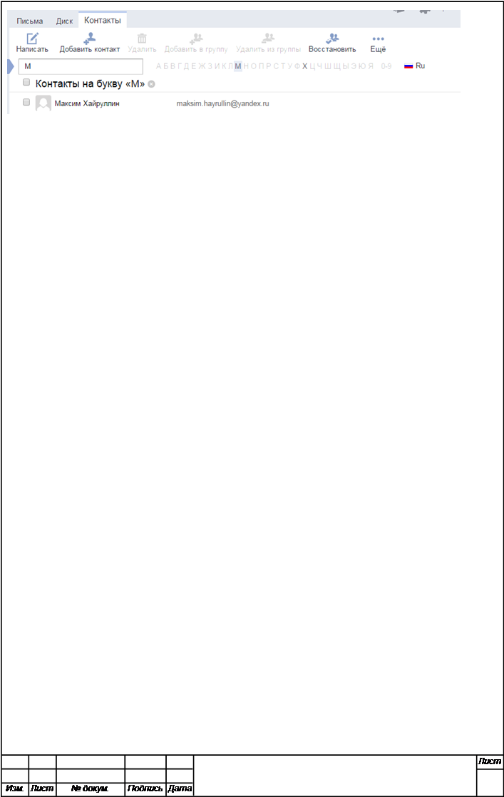 - Сформировать адресную книгу. Адресная книга помогает пользователю никогда не терять адреса друзей, коллег и знакомых. Чтобы открыть адресную книгу нужно нажать на кнопку «Контакты», находясь в почтовом ящике.