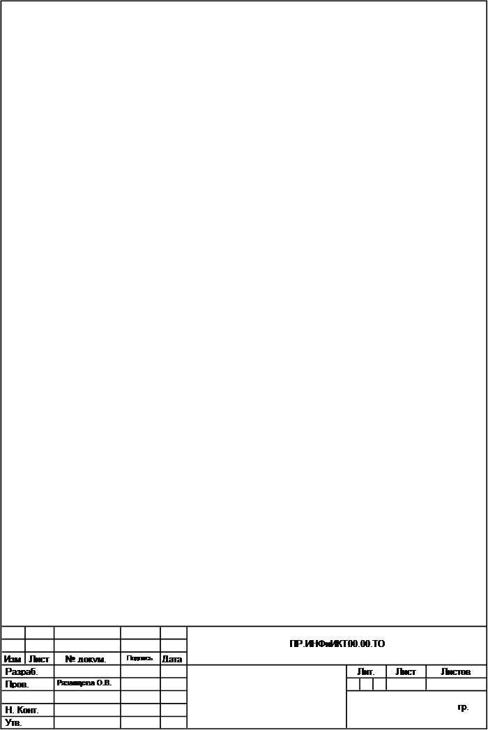 Тема: «Создание и заполнение таблицы постоянными данными и формулами» Цель работы: получить практические навыки формирования структуры таблицы и заполнения ее постоянными значениями-числами, символами, текстом. Оборудование: ПК. Ход работы: Вычислительная среда, таблицы для статистической обработки данных, т.е включающая в себя библиотеку математических, коммерческих и логических функций, а также графические возможности демонстрации статистических процессов во времени, называют электронной таблицей. Главными понятиями при работе с электронными таблицами являются: ячейка, столбец и строка, адрес, тип данных в ячейке, диапазон, выделение диапазона, редактирование данных в таблице, расчёт данных диапазона, построение графиков и диаграм для диапазона. Каждая ячейка имеет адрес: первой указывается буква-пометка столбца, а затем цифра-пометка строки, поэтому её адрес состоит из двух пометок. Столбец помечают адресом-буквой, а строку - адресом-цифрой. Набор несколько ячеек одной строки задаётся диапазоном. Адрес ячеек, записанный с помощью буквы и цифры, называется относительным адресом, так как он постоянно соотноситься со столбцом и строкой вслед за перемещением курсора. Прежде чем начать работу с таблицей, нужно хорошо подготовиться к этому, в частности определить размеры таблицы, размеры таблицы, размеры строк и столбцов, форматы представления чисел, шрифты, используемые цвета, порядок выравнивания данных, расположение таблицы, оформление границ и т. д. Именно с этого процесса, который называют моделированием электронной таблицы. Выделяют следующие виды форматов: ñ Общий - представление числа в том виде, в котором оно было введено в таблицу; ñ Числовой - представление числа с дробной частью или в виде целого, а также отрицательное- красным цветом; ñ Денежный и финансовый - формы числа с выводом денежной единицы в виде целого или с дробными знаками после запятой, а также отрицательное число красным цветом; ñ Экспоненциальный - для больших ли очень маленьких чисел, например в виде 25Е-4 ñ ñ Дата и время - варианты представления; ñ Текстовый - число представляется в виде текстовой константы; ñ Дополнительный - почтовый индекс, номер телефона, табельный номер
