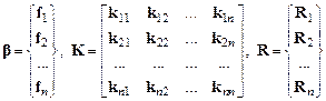 Отметим, что суммирование ведется по всем элементам, примыкающим к узлам с одинаковыми номерами Для вывода уравнений равновесия введем векторы и матрицы для всей пластины:
