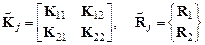 Теперь сформируем матрицу жесткости конечного элемента и узловые нагрузки в виде блоков, соответствующих структуре вектора перемещений