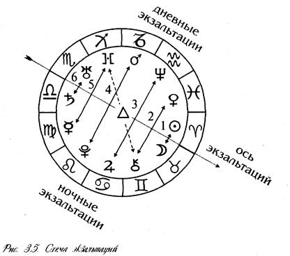 На первый взгляд не видно никакой системы в соответствиях между планетами и знаками их возвышений. На самом деле система есть, достаточно красивая и закономерная (более подробно мы на ней остановимся позднее).