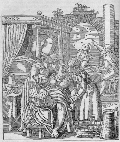 Рождается ребёнок… Что говорят планеты и звёзды? Гравюра Якоба Руэффа, 1587 г.