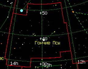 Лучшее время для наблюдения на территории России — март, апрель. Гончие Псы (лат. Canes Venatici) — созвездие северного полушария неба. Площадь 465,2 квадратного градуса, 57 звёзд, видимых невооружённым глазом. Наилучшие условия видимости в марте — апреле. Видно на всей территории России. Интересные объекты Ярчайшая звезда созвездия — α Гончих Псов, имеющая собственное название «Сердце Карла» — одна из красивейших двойных звёзд. M51 — спиральная галактика «Водоворот», видимая плашмя. Спиральные галактики M63 «Подсолнух» и M94, пекулярная галактика M106. M3 — шаровое звёздное скопление. Расположено около южной границы Гончих Псов и созвездия Волопаса. Звёздная величина скопления 6,3m, угловой диаметр 38′. История Новое созвездие. Введено Яном Гевелием в 1690 году в небесном атласе «Уранография». Гевелий изобразил созвездие в виде двух собак, которых Волопас натравливает на Большую Медведицу. Нужно заметить, что собаки в изображении созвездия Волопас встречаются и раньше. Первое известное историкам астрономии подобное изображение появилось в 1493 году у немецкого картографа Джоаннеса Стоффлера, затем — в «Звёздной карте» Апиана в 1540 году. Использовался этот образ и позднее. Но эти изображения имели другую конфигурацию, собаки были меньше и, главное, не были выделены в отдельное созвездие и оставались безымянными. Таким образом, автором созвездия Гончие Псы можно действительно считать Яна Гевелия.