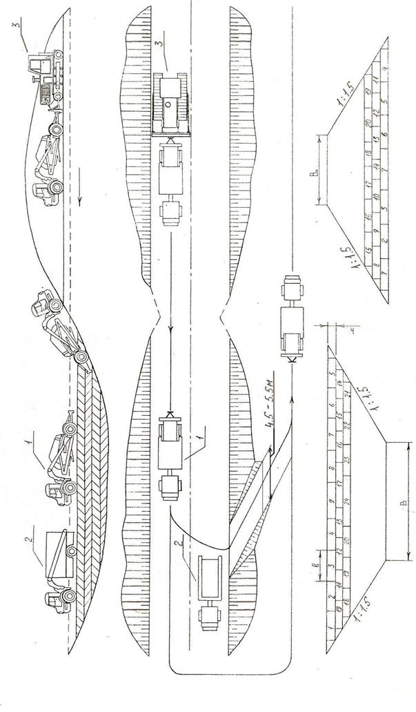 Технологические схемы производства земляных работ для каждого производственного участка проектируются в зависимости от принятого способа производства работ и типа ведущих машин.