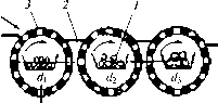 Рис. Вибрационное калибровочное устройство Барабанные калибровочные машины представляют собой вращающиеся барабаны с отверстиями на поверхности. Ось барабанов может быть наклонена к горизонтали, а внутри приварена винтовая направляющая для более равномерного распределения продукта по сетчатому цилиндру. Поверхность разделена на зоны с отверстиями возрастающих размеров, имеющих различную форму: круглую, овальную. Плод попадает в отверстия барабана и падает в сборный лоток, а затем отводится на дальнейшую переработку. Более крупные плоды попадают на следующий барабан и т. д. Барабанные калибровочные машины предназначены для разделения овощей и плодов, в основном имеющих твердую консистенцию, например картофеля на несколько размеров. Разновидностью барабанных калибровочных машин являются параллельно смонтированные вращающиеся перфорированные барабаны 3, между которыми имеется плоская наклонная поверхность 2. Плод попадает в отверстия барабана и падает в сборный лоток 1 внутри барабана, а затем отводится на дальнейшую переработку. Более крупные плоды попадают на следующий барабан и т. д. Сетчатые барабаны медленно поворачиваются с частотой не более 1,2 с-1.