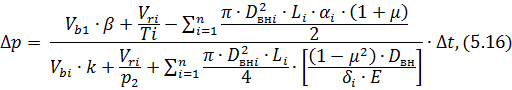 µ = 0,1 – коэффициент Пуассона; Dвнi – внутренний диаметр трубы; Li=12000 м – суммарная длина трубы; αi=1,25·10-5 К-1 – температурный коэффициент расширения стали трубы; βi=2,1·10-4 К-1 – температурный коэффициент расширения воды; δi – толщина стенки стали;