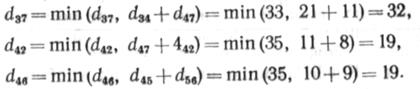 Величины d26 и d56 своего значения не изменили. Для /=2 также выполняется операция (3.12), определяющая все элементы теперь уже табл. 3,3, не лежащие во второй строке и втором столбце, так как при этом используются результаты вычислений при j=1;
