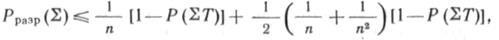 Определив по формуле (6.26) Рра3р, по графику зависимости параметра безопасности у от Рразр (см. рис. 6.13) находим допустимое удоп (при полученном или заданном значении Рралр), которое определяет допустимое отношение хвезД/&. Приведем пример расчета участка трубопровода длиной 40 км. При средней длине трубы 12 м общее их число составит п = 3,3 • 103. Пусть нас интересует вероятность разрушения труб при мере надежности участка в целом Pi(T)=0,99 и Pz(T) =0,999. Выполнив вычисления по (6.26), получим в первом случае Рразр^3-10~7, а во втором Ррзэр^З- 10~8. Поскольку трубопровод не может проходить на всем протяжении по участку одной категории, то условие (6.26) можно использовать для оценки вероятности разрушения на каждом участке, характеризующемся одинаковыми условиями. Рассмотрим трубопровод как систему последовательно соединенных элементов, представляющих отдельные участки, вероятность разрушения которых определена по формуле (6.26). Решение выполняется аналогично рассмотренному случаю с одним участком. Задаваясь требуемым значением меры надежности трубопровода в целом P(ZT'), определим по (6.26) вероятность его разрушения: