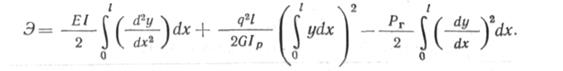 Продольную силу, которая возникает при этом в трубопроводе, можно найти, учитывая условие превращения потенциальной энергии внешних сил (q и Р) в потенциальную энергию упругого изгиба. Выполнив вычисления, находим