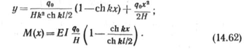 где ^—прогиб по (14.68). Поскольку длина нити увеличилась за счет Д^, распор Н ѵменьшится на величину