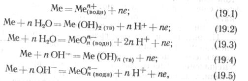 Элсктрохимическая коррозия металла в электролите сопровождается двумя сопряженными процессами: переходом ионов металла в электролит с образованием гидратированных ионов и разрядом этих ионов с выделением на поверхности металла нейтральных атомов. Первый процесс называется анодным, второй — катодным. Анодный процесс может быть охарактеризован одним из уравнений вида