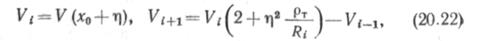 где Ѵе — естественный потенциал. На рис. 20.7, б показаны оба этих граничных условия. Используя разностную схему для силы тока, можно составить уравнение