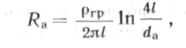 где ргр — удельное сопротивление грунта; / — длина анода; й& — его диаметр.