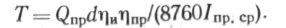 где 0,6 — ориентировочный коэффициент взаимовлияния про-текторов в группе. Далее определяют КПер.г = Ктр/Мг. Одной из важнейших расчетных характеристик является срок службы протектора Т, который зависит от массы протск-тора Рпр, электрохимического эквивалента материала протек-тора <7, коэффициентон использования протектора т)и и его к. п. д. т)Пр, а также средней силы тока протектора /ПР. ср или группы протекторов /г. Ср: