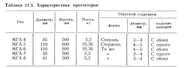 Протекторы выполняют в форме цилиндрического стержня (табл. 21.8).