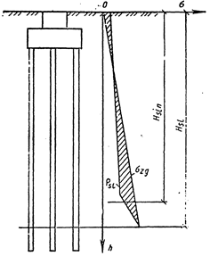 Рис.1.5. К определению дополнительной нагрузки на сваю по дефициту несущей способности просадочного грунта (заштрихованная область)