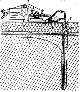 При расположении насосного агрегата и коллектора на поверхности земли установки типа УВВ работают эффективно, если выдерживаются соотношения между глубинами выемок и глубинами залегания водоупора, приведенные в табл.5. ТАБЛИЦА 5. УСЛОВИЯ ОПТИМАЛЬНОЙ РАБОТЫ УСТАНОВОК ТИПА УВВ