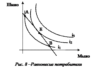 3. Равновесие потребителя. Совместим на одном графике бюджетную линию и карту безразличия (рис. 8).