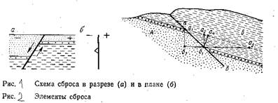 Сбросы. Элементы сбросов. К сбросам относят нарушения, в которых поверхность разрыва наклонена в сторону расположения опущенных пород.