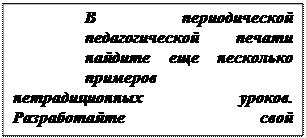 Предмет: География, 8-й класс. Тема урока: «Путешествие по Европе». Тип урока: Урок-путешествие (деловая игра) – 2 часа. Цель урока: Создание буклетов-путеводителей по городам Европы. Материалы к уроку: Книги, атласы, карты, энциклопедии – в бумажном варианте и на лазерных носителях; бумага, клей, старые журналы, карандаши; готовые образцы буклетов и путеводителей (культурные аналоги). Проблема урока: Каковы принципы составления маршрута путешествия? Этапы и виды деятельности учеников: Учитель называет 3-4 европейские страны и групповодов по каждой из стран, которых предварительно инструктирует о характере деятельности. Остальным ученикам предлагается выбрать страну (вариант: групповодам дается возможность самим набрать свою команду) – 5 мин. Задание группам: «Вы работаете в туристической фирме и должны разработать путеводитель (буклет) по городам одной из европейских стран (3-5 городов). Для работы можете использовать имеющиеся материалы. На следующем уроке вы будете защищать свой буклет» – 5 мин. Работа по группам: разработка концепции буклета, составление плана его изготовления; распределение обязанностей внутри группы; выполнение задания; рефлексия деятельности группы – 35 мин. Рецензирование выполненных буклетов экспертами – учениками из других групп – 10 мин. Создание жюри (одновременно с рецензированием буклетов). От каждой группы выделяется по одному человеку в состав жюри, которое занимает позицию туристов, выбирающих путешествие. Группа, чью страну в итоге выбирают туристы, побеждает в конкурсе – 5 мин. Презентация группами своих буклетов – 30 мин. Итоги урока – 5 мин. Рефлексивное задание ученикам: Напишите в форме плана рекомендацию «Как разработать маршрут путешествия».