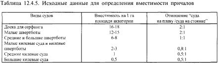 При определении вместимости причалов (стоянок) рекомендуется исходить из средней маневренной вместимости на гектар площади акватории с учетом типов судов, а также отношения числа судов на плаву к числу судов на стоянке (табл. 12.4.5).