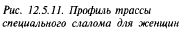 Профиль трасс состоит из чередующихся крутых и пологих участков. Количество изменений уклонов, наибольшая допустимая длина предельно пологих и крутых участков не нормируются. Перепады каждой из трасс обозначаются на местности через каждые 50 м по вертикали (рис. 12.5.11).
