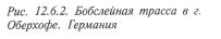 Склон должен быть северным или северо-восточным, оптимальна трасса на водоразделе склона. Средний естественный уклон для санных трасс 17 - 22%, для бобслейных и комбинированных 14 - 19%. Ширина полосы участка для санных трасс 30 — 40м, для бобслейных и комбинированных - 50 - 60м. Протяженность по склону для санных трасс 900 -1100м, для комбинированных - 1200 - 1300 м, для бобслейных - 1500 - 1700м. Оптимален склон с хвойным лесом, со спокойным микрорельефом, без оврагов и холмов (рис. 12.6.2 - 12.6.3). Постоянство снежного покрова желательно не менее 4 месяцев, средняя температура воздуха зимой от - 12° до - 25°С. При положительных и нулевых температурах зимой для продления сезона эксплуатации целесообразно искусственное намораживание льда. Целесообразно проектировать трассу на участке, позволяющем расположить сооружения в последовательности спортивно-технологических элементов. Трасса содержит три участка. Первый - "набор скорости", с максимальным уклоном по естественному склону, протяженностью 180 — 250м, с ограниченным количеством спортивных элементов. Второй участок - "максимальная работа" - с основными оперативными элементами (виражами). Уклон для всех дисциплин — не более 15%, протяженность - 350 - 400м. Третий участок - "активный финиш" - с ограниченным количеством спортивных элементов. Здесь "лабиринт" и гасящий скорость вираж. Уклон участка ниже среднего по трассе. Протяженность — 250 — 300м.
