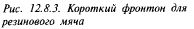 424 физкультурно-спортивные сооружения Сеста пунта (точная корзина). Названа по "орудию" игры, представляющему собой ловушку в виде изогнутого по длине желоба, плотно сплетенного из ивовых прутьев или пластмассовых нитей на каркасе из каштановой древесины; длина желоба по линии изгиба 90 - 110см. Пала ларга (бита длинная). Названа по "орудию"; это плоская бита из цельного куска древесины; ее длина 52 — 53см, ширина в наиболее широкой части 10,5см и толщина 2,5 — 3 см. Ремонте. Названа по "орудию" игры - плетеной, слегка изогнутой по длине бите. В коротком фронтоне для кожаного мяча (рис. 12.8.2) культивируются еще три разновидности. По всем трем проводятся соревнования крупнейшего масштаба. Мано (рука). Здесь ударяют по мячу кулаком или запястьем, при этом часто применяются защитные бинты; Пала корта (бита короткая). Названа по "орудию" игры; это деревянная плоская бита длиной не более 51см; Полета (бита малая) с кожаным мячом. Названа также по игровому инвентарю; бита длиной не более 50 см. В коротком фронтоне для резинового мяча (рис. 12.8.3) играются две разновидности, по обеим проводятся соревнования крупнейшего масштаба. Фронтеннис. Здесь используются обычные ракетки и мячи для тенниса; Полета — с резиновым мячом. В коротком фронтоне для мексиканского фронтенниса культивируется только фронтеннис мексиканского происхождения (рис. 12.8.4). Тринкет (рис. 12.8.5) используется для мано, палеты с кожаным мячом, палеты с резиновым мячом, а также для шаре. Последнее название повторя-