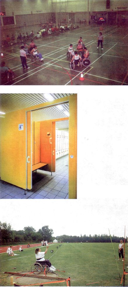 ФИЗКУЛЬТУРНО-СПОРТИВНЫЕ СООРУЖЕНИЯ, ИСПОЛЬЗУЕМЫЕ ДЛЯ ЗАНЯТИЙ ИНВАЛИДОВ_________________________ 433 До последнего времени занятиям физической культурой и спортом людей с физическими недостатками не уделялось должного внимания. Гуманизация, выдвигая на первый план включение инвалидов в многообразную жизнь общества, требует создания для всех людей, независимо от их физического состояния, возможностей для реализации жизненных потребностей. Значительная часть трудностей на этом пути заключается в организации пространственной среды. Необходимость учета потребностей инвалидов в архитектурном проектировании впервые была закреплена в нормативном документе ВСН 62-91 «Проектирование среды жизнедеятельности инвалидов и маломобильных групп населения». Занятия физкультурой и спортом развивают двигательную активность -существенный фактор реабилитации людей с физическими недостатками. Особенно важна достигаемая при этом психологическая реабилитация, помогающая поверить в собственные силы, ощутить себя полноценным членом общества. Каждое здание или сооружение, посещаемое и здоровыми, и инвалидами, должно быть спроектировано так, чтобы инвалид не ощущал своего физического недостатка, мог свободно передвигаться и реализовать стремление к двигательной активности. С учетом этого были разработаны архитектурно-планировочные, конструктивные и технические требования к зданиям и сооружениям для инвалидов. В основу их проектирования было положено изучение потребностей инвалидов, начинающееся с выявления категорий людей с физическими недостатками по признаку особенностей физического поражения. Три категории инвалидов требуют наиболее существенных архитектурно-технических мероприятий: - люди с поражениями опорно-двигательного аппарата (ПОДА); - с дефектами зрения, полностью или частично слепые (ДЗ); - с дефектами слуха (ДС). Остальные инвалиды могут пользоваться сооружениями, где все предусмотрено для трех основных категорий, а также большинством сооружений для здоровых людей. Опыт проектирования и строительства дает примеры физкультурно-спортивных сооружений, предназначенных исключительно для инвалидов, но и они, как правило, носят лечебно-реабилитационный характер. Главенствующая же тенденция - создание условий, при которых инвалиды могли бы использовать любое спортивное или досуговое сооружение наравне со здоровыми. Инвалид должен ощущать себя полноценным и равноправным членом общества. Не только свобода передвижения и выбора видов двигательной активности, но и возможность не ограничиваться обществом инвалидов существенны в психологической реабилитации. Вместе с тем отношение здоровых людей к инвалидам, как ко всем остальным людям, может быть достигнуто только в процессе непосредственного и постоянного контакта с ними. Тенденция ценности человеческого общения настолько сильна, что сооружения, предназначавшиеся только для инвалидов, в процессе эксплуатации начинают использоваться и здоровыми людьми, а не рассчитанные на людей с физическими недостатками реконструируются и дополняются специальным оборудованием, необходимым инвалидам. Date: 2015-06-07; view: 664; Нарушение авторских прав |