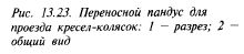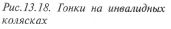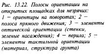 В открытых физкультурно-спортивных сооружениях в первую очередь надо устранить внешние строительные барьеры: поверхность покрытия дорожек для сообщения между открытыми сооружениями должна быть нескользящей и с фактурой, не слишком грубой для инвалидных колясок (рис. 13. 18). Освещение должно располагаться на высоте инвалида в коляске и быть ровным и достаточно ярким (в расчете на людей с частичной потерей зрения). Указатели должны быть четкими и хорошо освещенными. Необходимо тщательно спроектировать бортовые камни, перекрестки и пандусы, обеспечить удобный доступ с автостоянок.