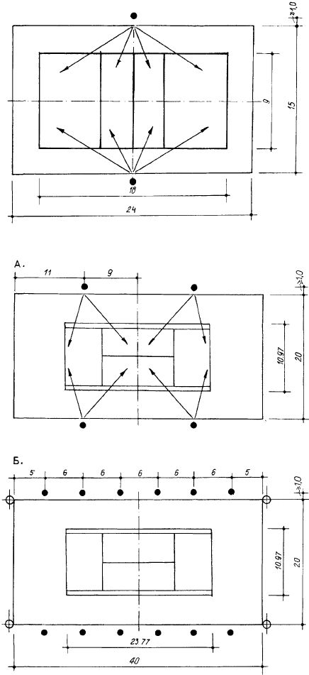 ИНЖЕНЕРНОЕ ОБОРУДОВАНИЕ, ОСВЕЩЕНИЕ И ЦВЕТ В СПОРТИВНЫХ СООРУЖЕНИЯХ_________________________________________________ 515 Сложность освещения сооружений для стендовой стрельбы связана с быстрым перемещением предмета наблюдения ("тарелочки"). Как правило, стенды освещаются прожекторами (рис. 15.3.6) на мачтах высотой 5-10 м для траншейного и 20-25 м для круглого стендов, причем для круглого следует ограничить слепящее действие прожекторов (жалюзийными решетками, кольцевыми рассеивателями и др.).