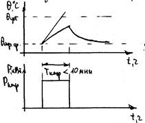 Время включенного состояния электроприемника настолько мало, что температура его частей за это время не успевает достигнуть установившегося значения, после отключения она снижается до темперетуры окружающей среды.