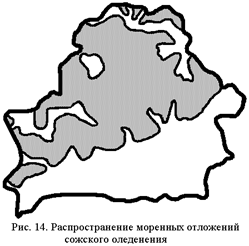 хвойно-широколиственным лесам пришли сосново-берёзовые, на востоке еловые, позднее по мере наступления нового оледенения и эти леса были заменены берёзовыми редколесьями. Прогрессирующее похолодание привело к новому – днепровскому - оледенению, которое сплошным чехлом льда перекрыло всю территорию Беларуси и распространилось далеко на юг (рис. 13, [4]). Сильная расчленённость сформировавшегося к тому времени рельефа и глубокие долины, а также широкое развитие выходов на поверхность коренных пород способствовали возникновению при продвижении льдов многочисленных крупных отторженцев дочетвертичного возраста (например, девонских, меловых). Днепровский ледник оставил мощный и широко развитый комплекс собственно ледниковых, флювиогляциальных и лимногляциальных отложений. По мере сокращения и полного исчезновения льдов в днепровской стадии оледенения климат становился теплее, и освобождающиеся пространства начали заселяться берёзовыми и сосново-берёзовыми лесами с небольшой примесью ивы, ольхи и ели. С этого момента наступило новое – шкловское – межледниковье.