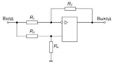 Методика измерения КОСС сводится к подаче на оба входа одновременно некоторого напряжения и измерению вызванного им выходного напряжения. Используется схема с дифференциальным сбалансированным входом (рисунок 14). В этой схеме R 1 = R 3, R 2 = R 4.