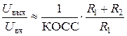 Так как к обоим входам усилителя приложено одно и то же напряжение, выходное напряжение будет определяться коэффициентом усиления синфазного сигнала усилителя. Поскольку в данной схеме нет дифференциального входного напряжения, коэффициент усиления усилителя будет иметь вид: