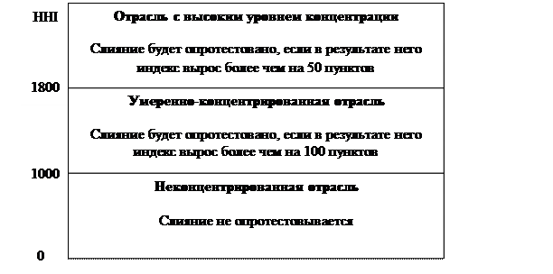 Рис. Индекс Херфиндаля-Хиршмана и антитрестовская политика в США Кроме этого, индекс Херфиндаля-Хиршмана может быть определен следующим образом: