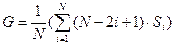 Начало кривой Лоренца будет находится в 0, т.к. 0% фирм имеет 0% выпуска продукции, а конец – в верхнем правом углу, т.к. 100% фирм будет иметь 100% выпуска продукции. В случае если в отрасли все фирмы имеют одинаковую процентную долю от совокупных продаж, то кривая Лоренца будет иметь вид прямой, отражающей линию абсолютного равенства. Это, например, соответствует отрасли А, в которой четыре фирмы имеют по 25% выпуска. Если же в отрасли функционируют фирмы разного размера, то кривая Лоренца будет отклоняться от линии абсолютного равенства. Например, отрасль В, в которой действует одна из четырех фирм (25 %), имеющей 70% от совокупных продаж. Таким образом, чем больше фирмы, действующие в отрасли, отличаются по размеру, тем дальше кривая Лоренца отклоняется от линии абсолютного равенства. Учет разного размера фирм при определении концентрации представляет собой сущность кривой Лоренца. На основе этой кривой и был рассчитан коэффициент Джини, отражающий суммарную оценку отраслевой рыночной власти. Для того чтобы определить индекс Джини для отрасли В, необходимо найти отношение площади треугольника С к площади треугольника D. Это отношение и покажет оценку степени различия размеров фирм. При этом если отрасль монопольная, то одна фирма произведет всю продукцию отрасли, область С займет всю область D, а отношение площадей указанных треугольников будет равна единице. Если фирмы одного размера, то площадь треугольника С будет равна нулю и отношение площадей треугольников С и D также будет равно нулю. Следовательно, индекс Джини может принимать значения от единицы до нуля. Чем более неравномерно распределение власти в отрасли, тем ближе коэффициент Джини к единице. Существуют различные формулы для расчета коэффициента Джини, одна из которых выглядит следующим образом: