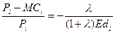 МСi – предельные издержки производства i-го товара; Edi – показатель ценовой эластичности спроса на i-й товар; λ – множитель Лагранжа. Т.о., уровень власти естественной монополии находится в прямо пропорциональной зависимости от величины, обратной ценовой эластичности спроса. Коэффициент пропорциональности Недостатком такой системы ценообразования является неравенство распределения реальных доходов, т.к. в доходах малообеспеченных слоев населения большую часть занимают расходы на товары с неэластичным спросом.